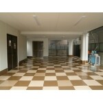 天井、壁を白く塗り替え、床は、碁盤の目に落ち着きのある二色で塗装しました。