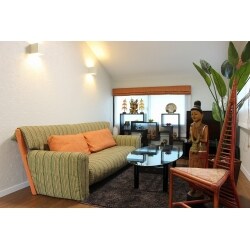 住宅密集地のため1階部分は外部からの視線に配慮、2階部分は開放的な雰囲気に一新。ハイセンスなお施主様のプロデュースで、内装は自然を意識したオレンジ系とグリーン系でまとめ、都会の中にありながら、東南アジアのリゾートホテルのようなお住まいへ生まれ変わりました。