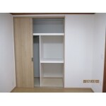 床はフローリングになり、壁紙と押入れも変わりました! 区切ってあった押入れの扉は一枚になり、スッキリしています。、扉は区切られているより一枚に繋がっていると高さが出て見えるので、お部屋が広く(長く)見えます。