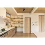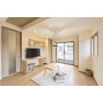 必要な耐震補強を施し、床や壁に断熱材を入れて床暖房を設置、不要な窓を塞いでサッシはすべて複層ガラスに変えることで、お客様念願の「あったかい家」が完成。対面式キッチンを壁付けに変えることで、空間を広々ととることができました。 「シンプルナチュラル」をテーマに、床や建具、キッチンまで木目調でトータルコーディネートしているのが今回のリフォームのこだわりです。天井は幅の違う下地材を塗装し、ランダムに並べてデザイン性もアップ。更にテレビ台やキッチン可動棚はオーダーメイドでお作りすることにより、お客様のイメージ通りに仕上げることができました。