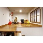 (旧株式会社ハウスドゥでの事例です。)元々の和室2部屋とキッチンの間仕切りを無くし、広々としたLDK空間に。照明はダクトレールを活用したスポットライトをご提案。床はヴィンテージオイル塗装の無垢材、壁は塗装で仕上げ、インダストリアルな雰囲気に。 空間を上下に分け、子供の遊ぶスペースと収納をご提案。 インナーサッシも取り付け、結露対策も!