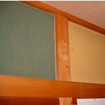 建てた当初はきれいだったのが、ボロボロ落ちるし、黒い斑点が出るしで何とかしたかった。Yさんがクロスをはれるといっていただいてやってもらったら案外すぐできてきれいになりました。