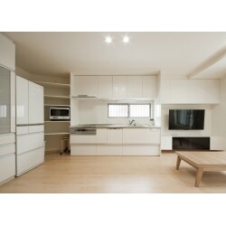 有機ガラス系人造大理石グラリオがお気に入りのコの字型キッチン