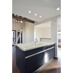 背面の収納を充実させ、IHで安全・効率を良くしています。ご家族皆様と調理をしながら対応できるようペニンシュラ型キッチンとなりました。 水栓やIHクッキングヒーターなどは最新の物をショールームで選びました。
