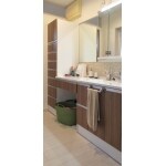 トイレ、洗面室の間取りを変更することで、今まで廊下であったスペースを水まわり空間に取り込むことができ、洗面スペースが広くなりました。あわせてドアのぶつかりも解消しています。 トール収納が付いた2人並んで使える洗面キャビネットをご選択されたことで、忙しい朝も快適に使える洗面室となりました。