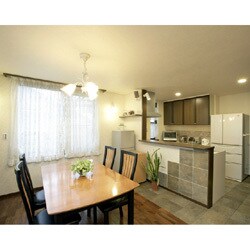 | その他採用機器・設備 | 親子ドア(トステム)、ガラスタイル(イタリア製)、キッチン(INAX)、ディスプレイフレーム(造作)、壁・エコカラット(珪藻土)、フローリング(チーク材)、飾り棚(造作)、テレビボード(造作) |