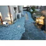 天然石の玄武岩をご提案し、奥行きのある表情としっとりとした深みのある色調で、高級感のある落ち着いたアプローチの空間となりました。周囲の玉石砂利は、お庭を彩るだけでなく、防草効果や防犯にもなります。 丸みを帯びている天然石の玉石砂利は高級感とやわらかな印象を与えてくれます。