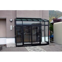 ポスト口に入れた新聞や郵便物のすきまから入ってくる雨や雪によって玄関がぬれてしまうことがお悩みで風除室を提案しました。