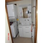 (旧東京ガスリモデリング株式会社での事例です。)洗面所は入口にある段差を解消するため床下地の工事を行いました。洗面化粧台はTOTOサクアW750を取付ました。引出タイプ、水栓金具は節水タイプのものです。陶器のカウンターなので耐久性もよく汚れも落としやすい加工がされています。カウンター下の収納量も増えたこたことにより、洗面所がすっきりしました。