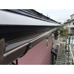 雨どいを新しいものに交換しました。 その時に雨どいの勾配も修正してから取付を行ったので 雨どい以外から水が流れ出す心配はなくなりました、