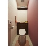 全面改装で浴室を広げるために水廻りの位置を大きく変更し、トイレは収納を重視してお打合せを重ねました。 お選びいただいたのは収納が一体となったTOTOレストパルです。 キャビネットの中にお掃除道具を仕舞うことができ、清潔感のあるスッキリとした空間になりました。 またキャビネットがあることで収納はもちろん、施主様の趣味であるマスコット類を並べて飾ることができ、可愛い空間に仕上がりました。 アクセントクロスはエレガントなピンクをセレクトされ、上品な印象に変わりました。 シンプルなトイレから、華やかでスッキリとした空間になりお喜びいただきました。