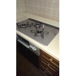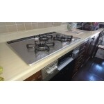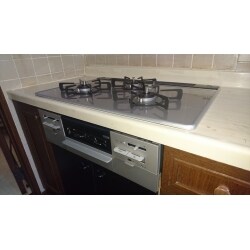 75cmサイズのガスコンロと60cmサイズのガスコンロをご提案させて頂き、現状と同じサイズの75cmの商品と交換しました。 トッププレートはお掃除のしやすいガラストップ仕様です。