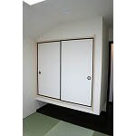 お客様のご要望で琉球畳を使うことは決まっていました。 押入れを宙に浮かし、窓の形に変化をつけることで、空間に変化をつくりました。