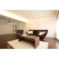 カーペット敷きだった床をフローリングに全面貼替えしました。触り心地の良いフローリングをご希望でしたので、突板のフローリングをご提案いたしました。 19帖の広いリビングダイニングでしたので、単調にならないよう間接照明を設けてお部屋全体に立体感が出るよう配慮しました。