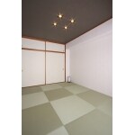 バイオレットカラーの畳でLDと調和の取れた和室に演出