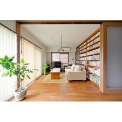 ご主人様がお持ちの沢山の本を収納できる壁面一面の本棚。 奥様がコツコツ集められた素敵な食器を飾りながら収納できるオープン棚のあるキッチン。 そして家族が集える自然素材を生かした広々としたLDKがご希望だったK様。 無垢のフローリングはイメージに合うものを何度も吟味した結果とても落ち着いた ご夫婦のイメージにピッタリの仕上がりになりました。 珪藻土の壁に足ざわりのよい無垢の床でついついリビングの床でお昼寝してしまうそう。