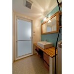 インテリア性の高い木目の扉で落ち着いた洗面所