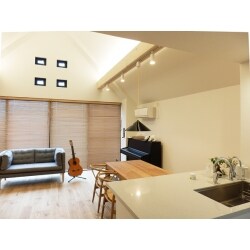 4階建住宅を全面リフォームすることになりました品川区のK様。 下階は賃貸と事務所スペースで、4階がK様の住居となっています。 一番のポイントはリビング。吹き抜けの斜め天井や小窓など既存のデザイン性を活かして、白と無垢の木材のナチュラルなイメージにリフォームしました。