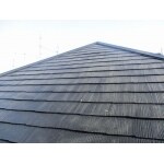 棟押さえの板金部分も色があせて錆が出ていました。写真でも分かるようにスレートが水を弾けずに染み込むような状態となっていました。