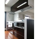 引き戸収納から引出式収納にすることで、収納量がアップ。レンジフードもお手入れがしやすいタイプへ。