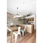 新築マンションをご購入されたお客様から、ブルックリンスタイルのお部屋にしたいとのご要望をいただきました。 お客様がモデルルームで気に入られたブリックタイルを壁一面に貼り、まるでモデルルームのようなお部屋となりました。 クロス仕上げだったキッチン側面も、木目のパネルを貼りました。