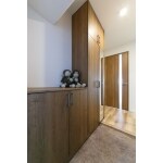 既製品の下足入れの他、脱衣室の一部を玄関側より使用する収納とし、長物も収納出来る様に造作しました。
