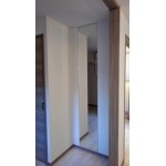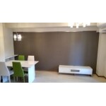 「新築マンションの購入にあたり、アレンジを加えたい」とのこと。リビング、洋室、玄関のニッチとトイレにアクセントクロスの施工。キッチンにはカップボードの設置。ミラーとピクチャーレールも取付けしたいとご要望をいただきました。