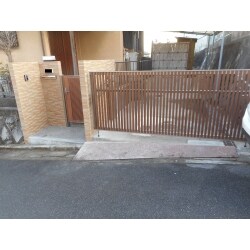 外構(門柱、ガレージ廻り)の改修を行いました。古くなった門柱や伸縮門扉を新しくしました。外壁の色合いに合うようにタイルオーバードアの選定をしました。