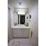 上品なクリスタルカウンターの洗面化粧台へ