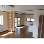引き戸、垂れ壁を撤去したことで、おおきな空間が確保できました。ご主人様のご希望で本棚を造作しました。