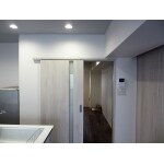 状況に応じて部屋の広さを変えられるように、可動式間仕切りを設置しました。また、間仕切りのカラーも白い壁とマッチするように選択し、照明は昼光から白色光へ簡単に変更可能なダウンライトを提案しました。