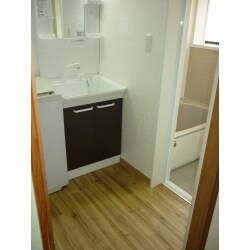 最新のユニットバスは、床が滑りにくくなっており、安全性も高い旨を説明し、在来浴室だったため、洗面所の一部壁・床が壊れてしまうので、洗面所のリフォームも一緒にご提案しました。