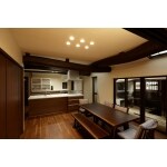大きな丸い梁を活かし、伝統工法ならではの広い空間を設計しました。梁の雰囲気に合わせて全体的な内装をコーディネイトしています。床下、外壁面、天井に断熱材を敷き込み、気密シートを張り、蓄熱暖房機を設置しているので、冬も暖かく、夏は外部の熱を遮断するので涼しく、快適な空間になりました。