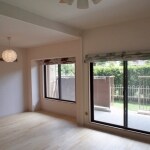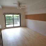 4.5畳相当の洋室に改修し、リビングと一体化。 付長押だけ再塗装して残しました。 照明やシーリングファンはお客さまがご用意。