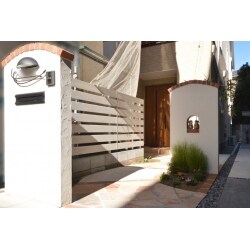 (旧株式会社桧家リフォーミングでの事例です。)目線がきになるとのことでしたので、アプローチをずらして目隠しにデザイン。