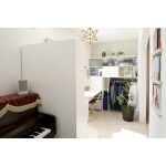 もともとご主人は、家での作業は家族が集うリビングを利用されていたため、リビングに面した庭に部屋を増築することにしました。 増築した部屋のデスク横に収納棚を造作し、デスクと一体化させることでデスクの散らかりを防ぎ、仕事で使う資料などの整理整頓ができます。 お子さんがピアノも始められるということで、増築部分にはピアノをおける場所も用意しました。 リビングにピアノを置くと物置台になってしまうことを懸念して、増築部に置くことになりました。 造作本棚を作業スペースの間に置くことで、よりピアノに集中できる独立した空間になります。 この造作本棚にはキャスターがついていますので、簡単に位置を移動できます。 増築部分とリビングの間の壁は、アーチ状にくり抜いて開放感と一体感を両立。 リビングと作業部屋の行き来も簡単なので、お子さん二人も部屋で宿題をしたり遊んだりでき、家族のコミュニケーションを減らすこともなくお仕事ができます。 また、リビングの採光にご不満があるとのことで、増築部分の窓を天井に近い部分に設置して、たくさんの光を取り込めるようにしました。