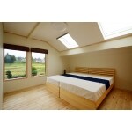 トップライトを設けましたが夜は苦になりません。 明るくすがすがしい寝室になりました。隣接するDEN側の窓も有り風通しが良いです。