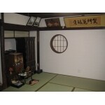 古民家の雰囲気を演出できるよう、現在の違い棚はメンテナンスをしそのまま利用しました。 丸窓はハンドメイドで既存の柱に合わせて現地で塗装をしたこだわりの素材です。
