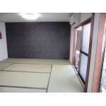 床には、特注しました薄畳を敷き、壁には和風のクロスを貼りました。正面は、アクセントの為、柄を変えています。
