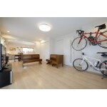 現在、入り口の近く部屋が使用されていないので将来は主寝室に出来る様にしつつも、当面はリビングと繋がる広いLDKとして使用できる空間をご提案しつつ、ご主人の趣味であるロードサイクルをオブジェとして飾れる部屋とすることでご希望されていた盗難からの心配を無くすことと保管場所の空間の有効活用をしました。 また、キッチンからパウダールーム、洗濯などの家事動線を出来る限り効率良く出来るように工夫をしました。