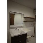 間取り変更をし、大きい洗面所にする事ができました。また小棚を新設することで、普段の家事するのに便利です。また洗面台もワイドを大きくし、また引き出しにすることで、収納力をアップするご提案をさせていただきました。
