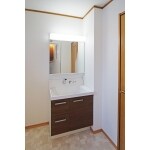 幅が120cmあった洗面化粧台を、あえて75㎝幅のタイプに入替え、多目的スペースを確保しました。