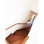 1階と2階に分けての賃貸利用を提案。 建具は突板のような風合いのもの、壁紙は空間を広く感じさせるために壁よりも天井を明るいものをご提案しました。