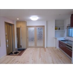 ”無垢の感触が気に入った!” という旦那様のお声にこたえて、 1階フロアをすべて無垢床にリノベーションしました。 お外にあったお手洗いも室内に持っていき、もう冬でも寒くありません。 もともとリビングにあったステンドグラスを残したいということで、工夫しました。 玄関框はご主人様が使っていた机を使用したいとのご要望だったので、大工さんと話し合い風合いのある、玄関框に仕上がりました。 結果大満足のリフォームになったということで、大変うれしく思います。 お二人ともこれからもお元気で暮らせるようにリフォーム致しました。