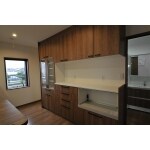 また、キッチン後ろにカップボードを設置して使い勝手が変わらないようにしています。