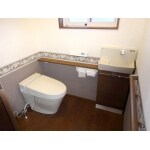 大便器と手洗の大きな空間に変更しました。壁紙と便器手洗い器のバランスを考え施工しています。