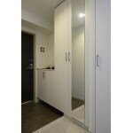 既存のシューズボックスと収納を取り払い、空間に合わせたフレキシブルなプランが可能な玄関収納「コンポリア」のカウンタータイプを設置。玄関ホールには姿見付きのトールタイプのコンポリアとコートクロークを設け、機能的な収納ができるプランをご提案。ホールや廊下にはLDKと同じホワイトオーク柄のフロア材を採用し空間の繋がりを演出した。