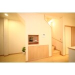限られた間口に、上部も利用して収納スペースを確保しました。