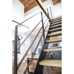 吹き抜けのリビングを中心にアイアンのストリップ階段やワークスペースなど、たくさんのお洒落要素を込めたお家になりました。「お洒落だけど、ずっと住むから不便なく」を施主様とたくさん話しあって出来たお家です。