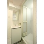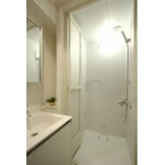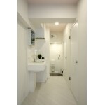 水まわりは入居者が特に気にするポイントなので、人工大理石のシャープなデザインのボウルにマットのキャビネットを合わせたお洒落なものを選定致しました。限られたスペースでも使い勝手が良くなるように、ミラー付きのキャビネットも設置しています。